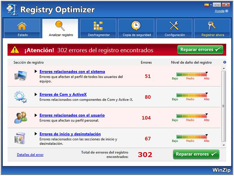 WinZip Registry Optimizer proporciona dos sencillas herramientas de registro que hacen todo el trabajo por ti. Registry Cleaner ayuda a prevenir problemas y errores del sistema explorando y limpiando automáticamente el registro al tiempo que elimina las entradas de registro innecesarias. Registry Optimizer repara, reorganiza y compacta el registro de Windows para lograr un mejor rendimiento y el máximo de velocidad.