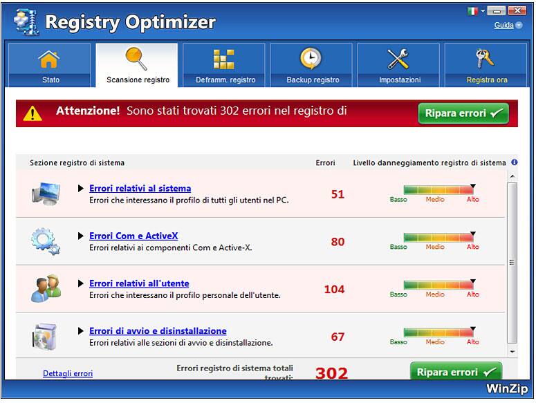 WinZip Registry Optimizer fornisce due strumenti di registro facili da usare che fanno tutto il lavoro al posto vostro! Registry Cleaner aiuta a prevenire crash ed errori di sistema eseguendo automaticamente la scansione e la pulizia del registro e rimuovendo le voci di registro non necessarie. Registry Optimizer ripara, riorganizza e comprime il registro di Windows per migliorare le prestazioni e ottenere la velocità massima.